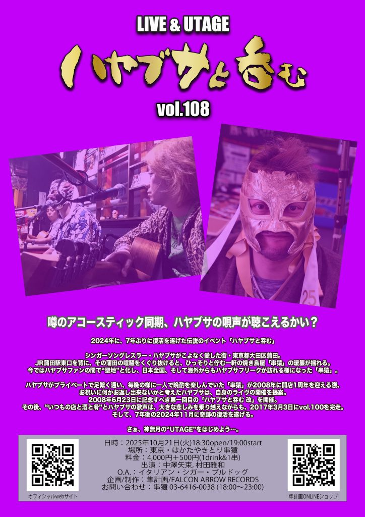 LIVE&UTAGE「ハヤブサと呑む vol.108」情報