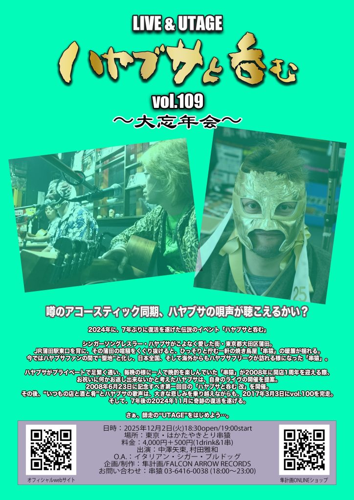 LIVE&UTAGE「ハヤブサと呑む vol.109」情報
