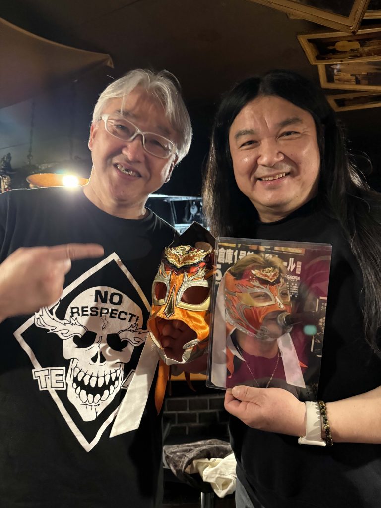 雁之助さんと、ハヤブサマスク職人・中村ユキヒロさんの2ショット!